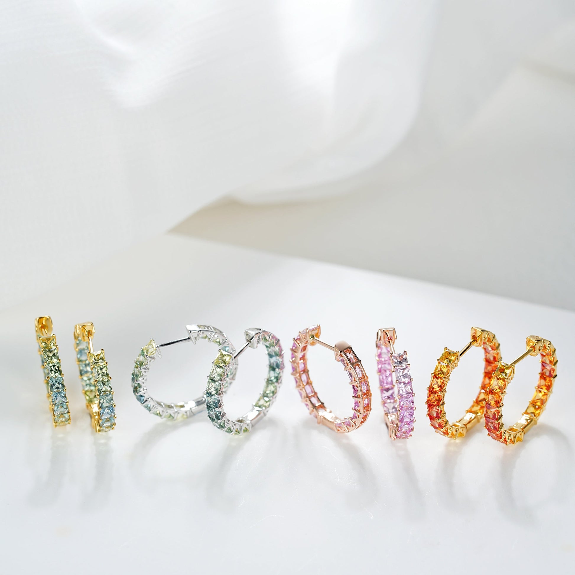 Chroma, a dazzling celebration of color and creativity. Each hoop earring features an array of vibrant natural sapphires that create a stunning visual. Expertly crafted to highlight the brilliance and sparkle of each gem, the Chroma series offers a bold and dynamic aesthetic. These earrings embody a perfect blend of luxury and artistry. Embrace the spectrum of colors and let them radiate with vibrant elegance.