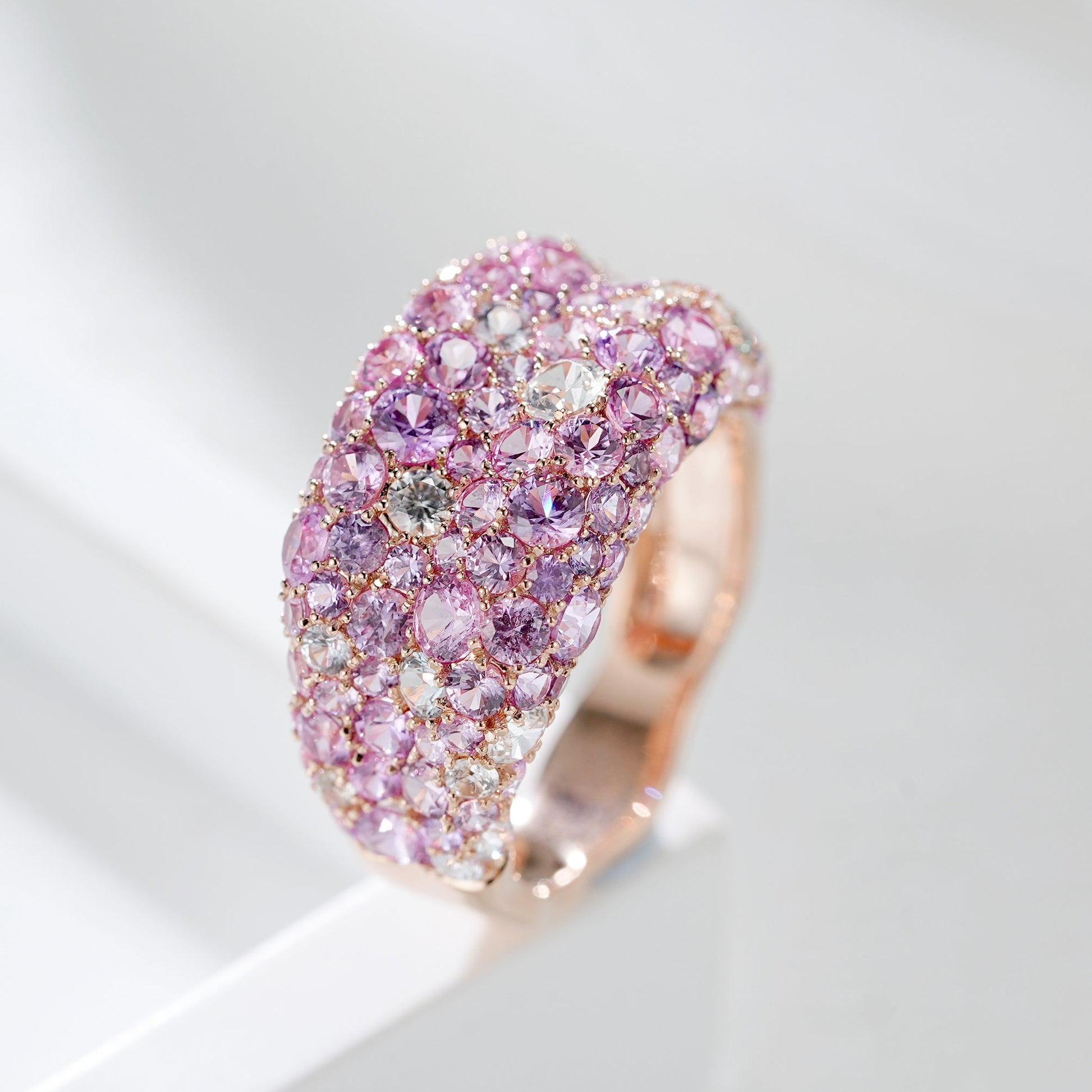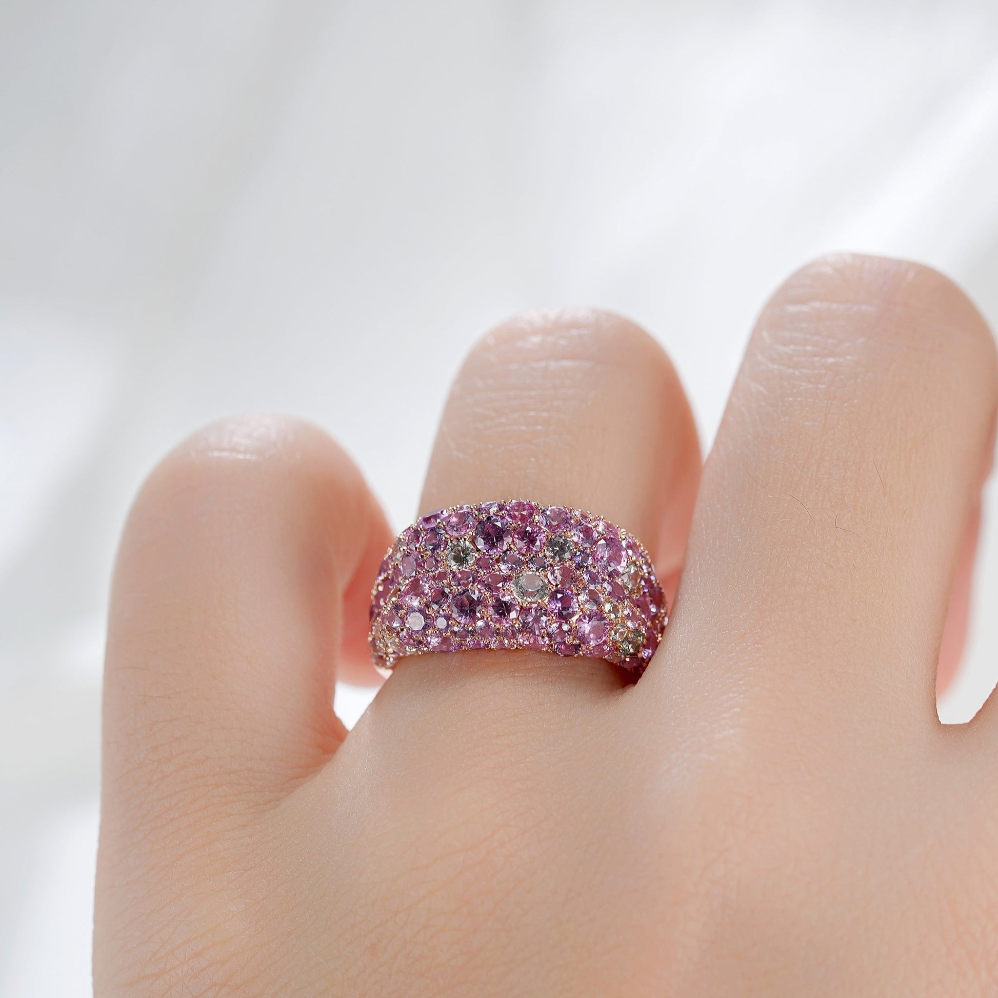 The Nova Ring dazzles with a kaleidoscope of multicolored gemstones, artfully set in a bold, curved 18k gold band. Radiant and contemporary, it reflects the brilliance of starlight in every angle. A striking statement piece, Nova adds vibrant charm and sophistication, making it the perfect jewel for modern elegance and individuality.