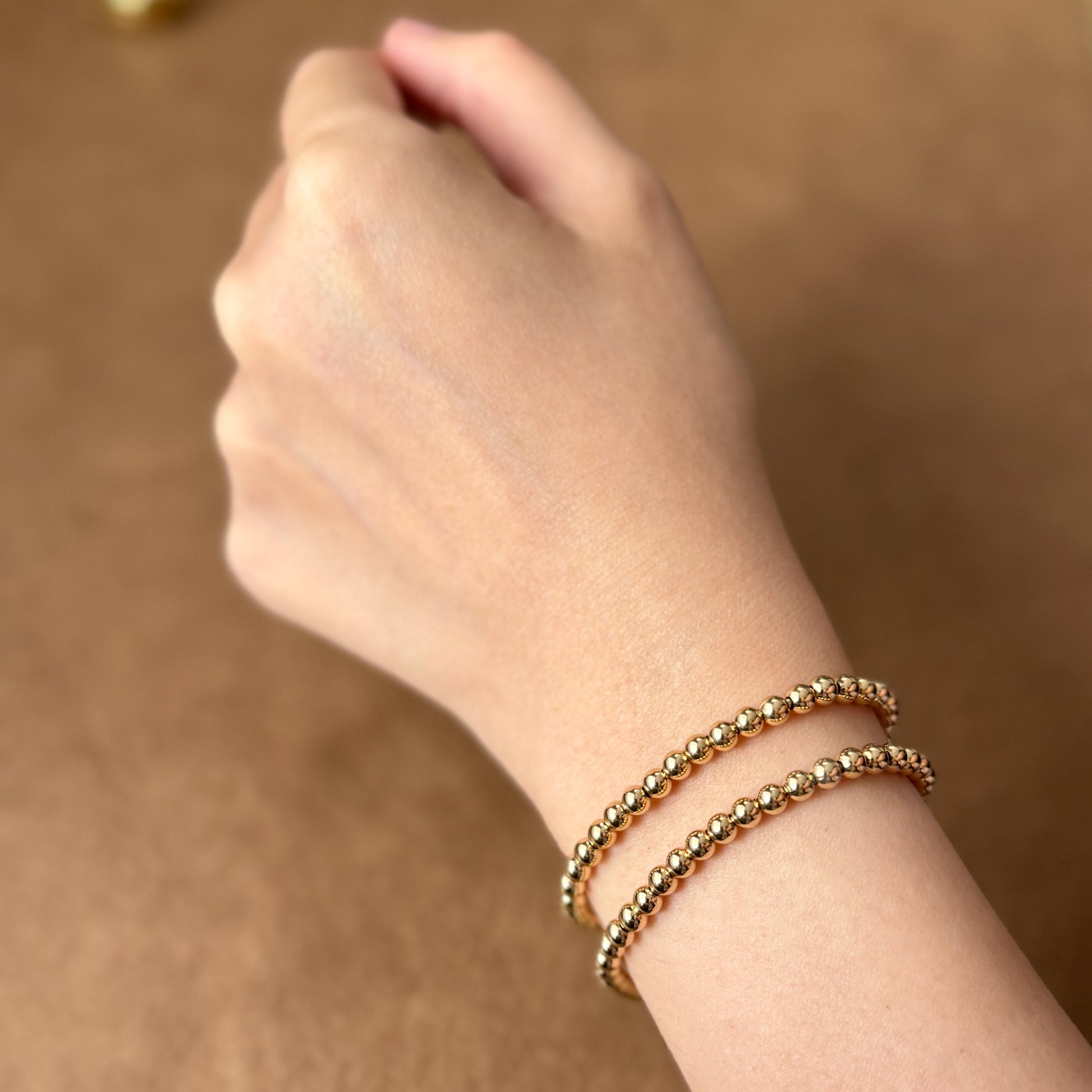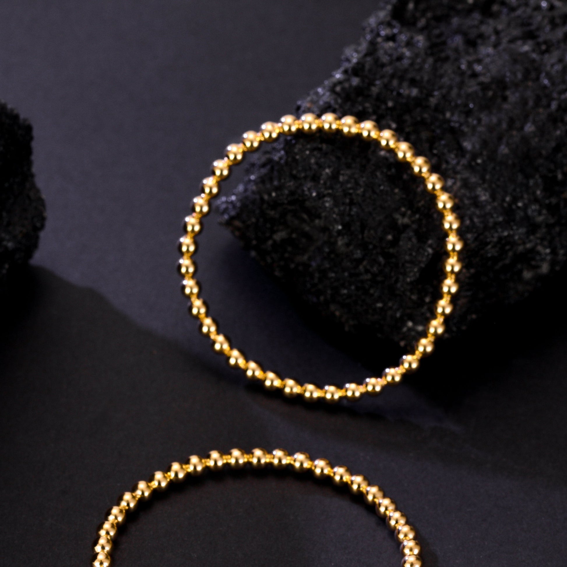 Perla is a refined symbol of effortless elegance. Crafted with perfectly polished 18k gold beads, this elastic bracelet offers a smooth, comfortable fit while radiating a soft, luxurious glow. Its minimalist design makes it ideal for everyday wear, whether worn alone for subtle sophistication or layered for a modern look. Timeless and versatile, Perla is a classic piece designed to complement any style with quiet confidence.