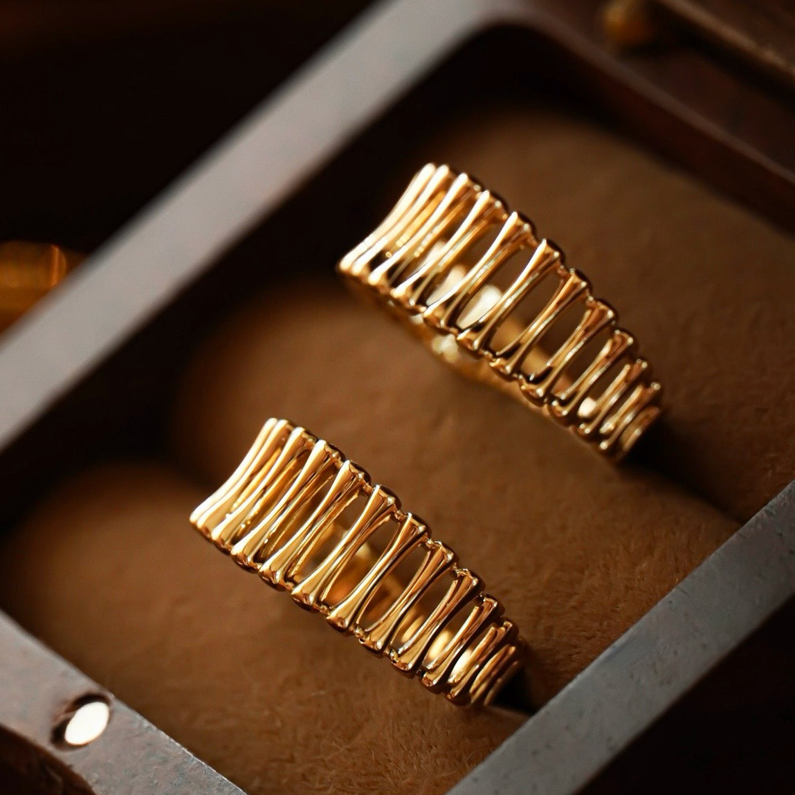 Vesta, a stunning gold ring inspired by the elegance of Roman columns. Crafted from 18k, this ring showcases intricate detailing reminiscent of classical architecture, capturing the timeless beauty of ancient Rome. Its sleek, column-like design embodies both strength and grace, while the lustrous gold finish adds a touch of luxury. Ideal for those who appreciate historical grandeur and sophisticated style, Vesta is a piece that exudes heritage and grace.